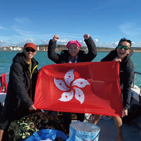 [獎勵計劃持章人成功橫渡英倫海峽 創下145年未曾締造的紀錄] 圖左註解 Allen (圖左) 及Eugene (圖右) 於船上保暖以準備接力。 圖右註解 Allen在橫渡英倫海峽挑戰的6小時後於晨光中向法國出發。 做不平凡的事 鄭麗珊律師 (下稱Eliza隊長)、車偉恒律師 (下稱Allen)及黃宇正律師 (下稱Eugene) 於2020年9月6日創下了145年來首支香港團隊以接力方式橫渡英倫海…
